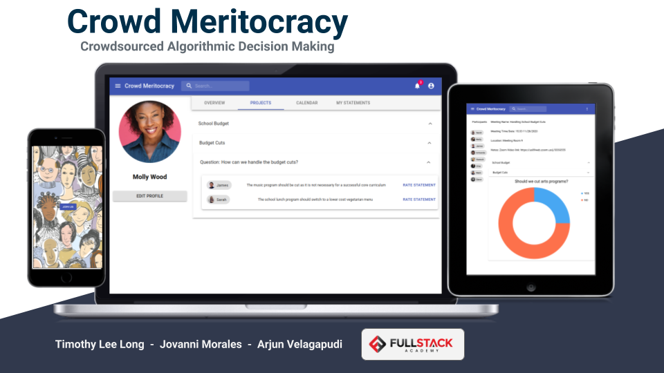Crowd Meritocracy is an algorithmic group decision making application driven by user interaction in a radically transparent forum where the best ideas win.